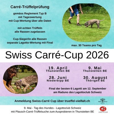 Am 09. Mai 2026 findet ebenfalls der Tag des Hundes statt. Der Lagotto Club Schweiz wird seinen Tag des Hundes an unserer Carré-Prüfung in Thunstetten durchführen.